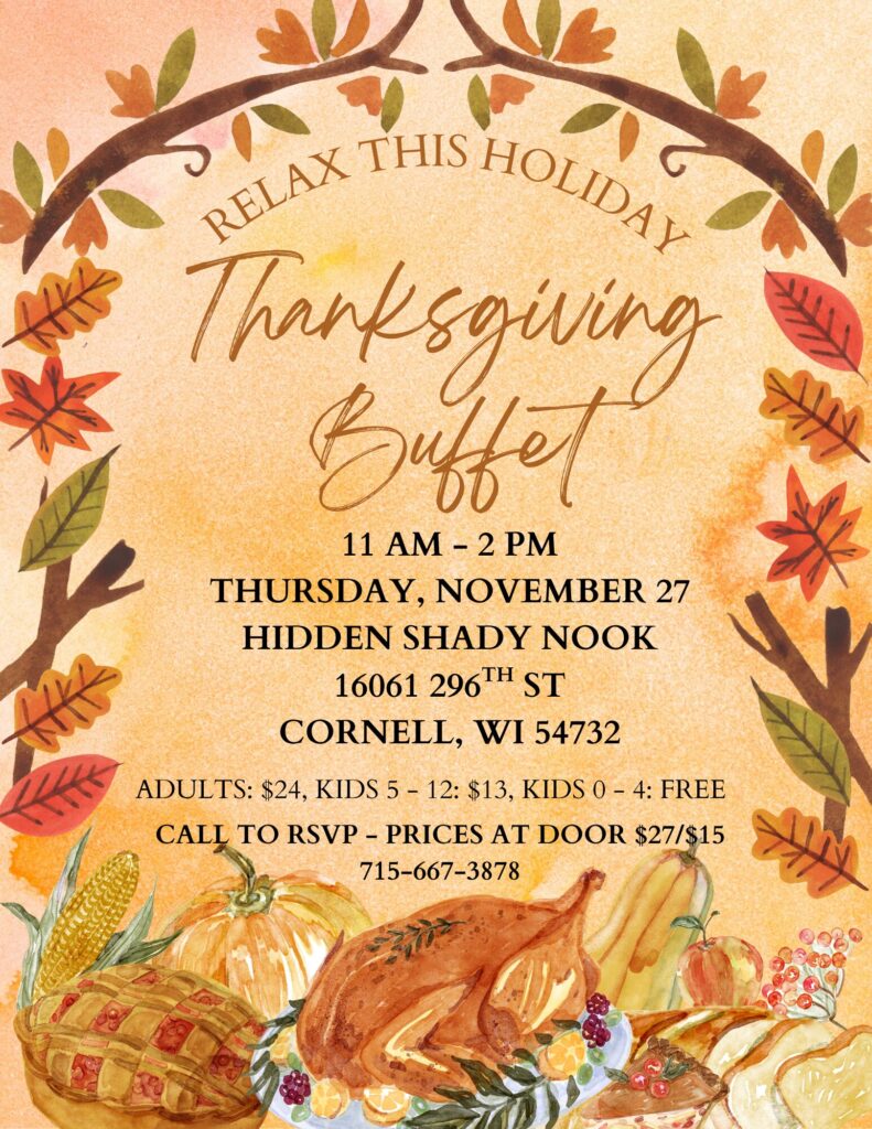 - Thanksgiving Buffet: 11 am – 2 pm